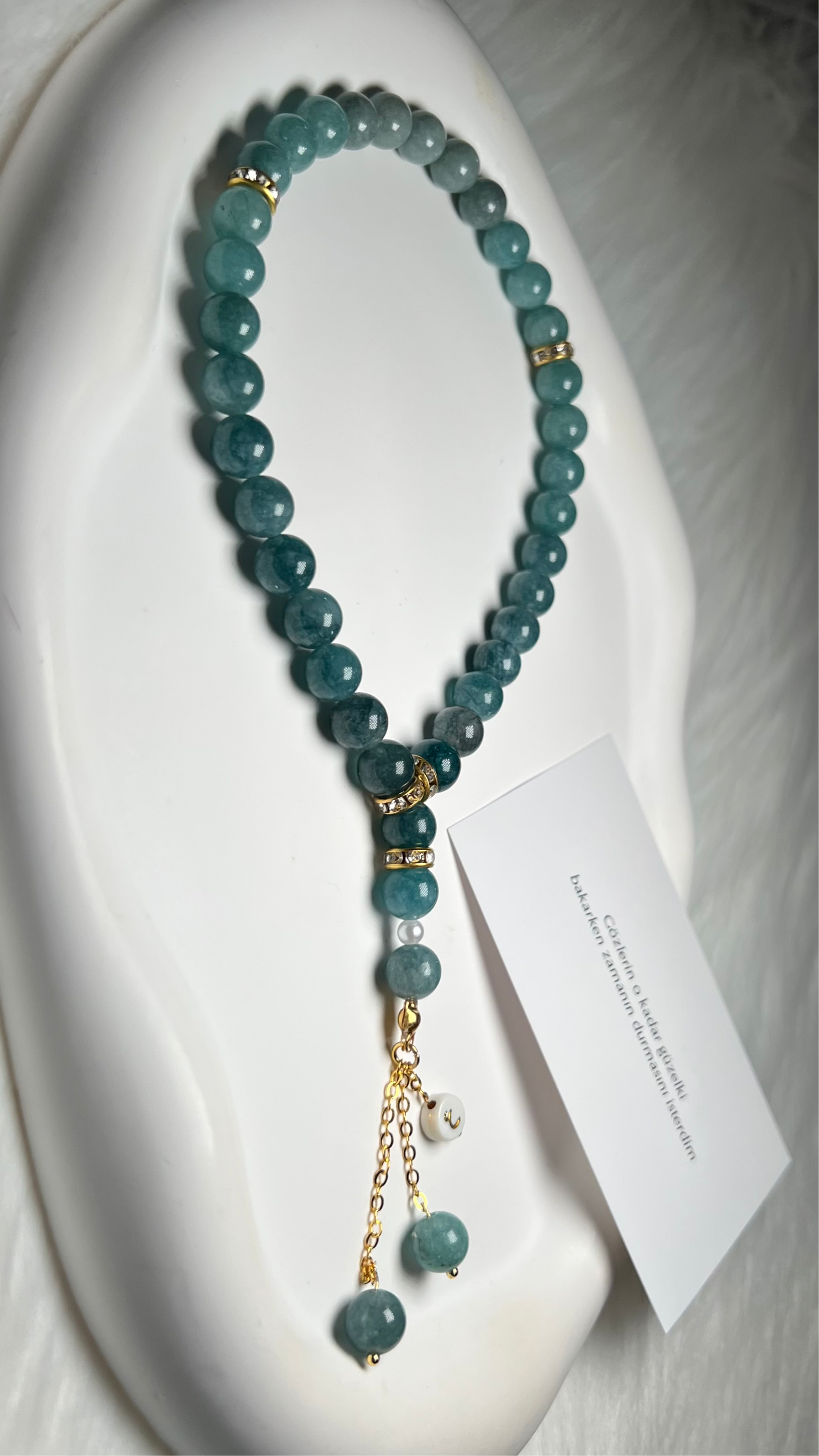 Die Augenfarbe einer geliebten Person verbunden in einer unserer handgefertigten, personalisierbaren Gebetsketten.