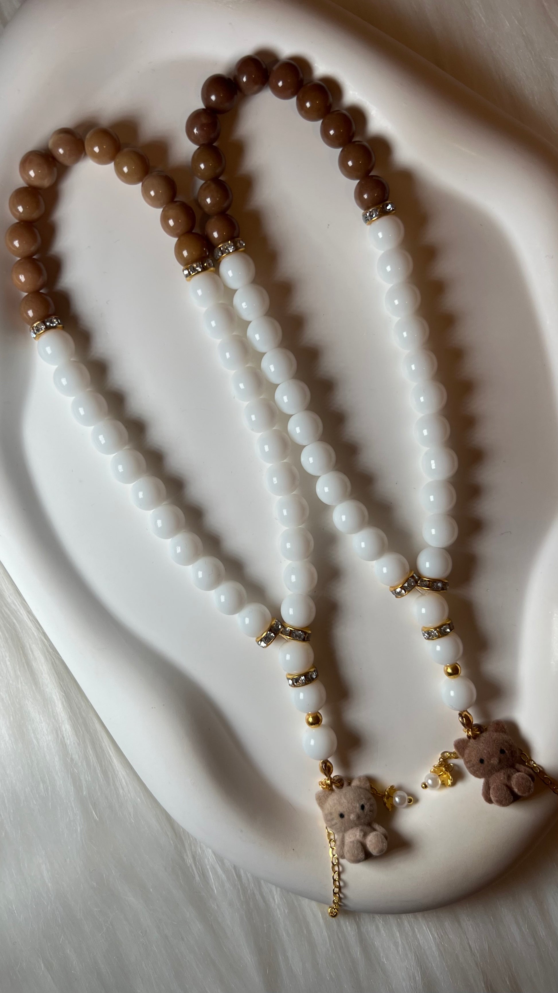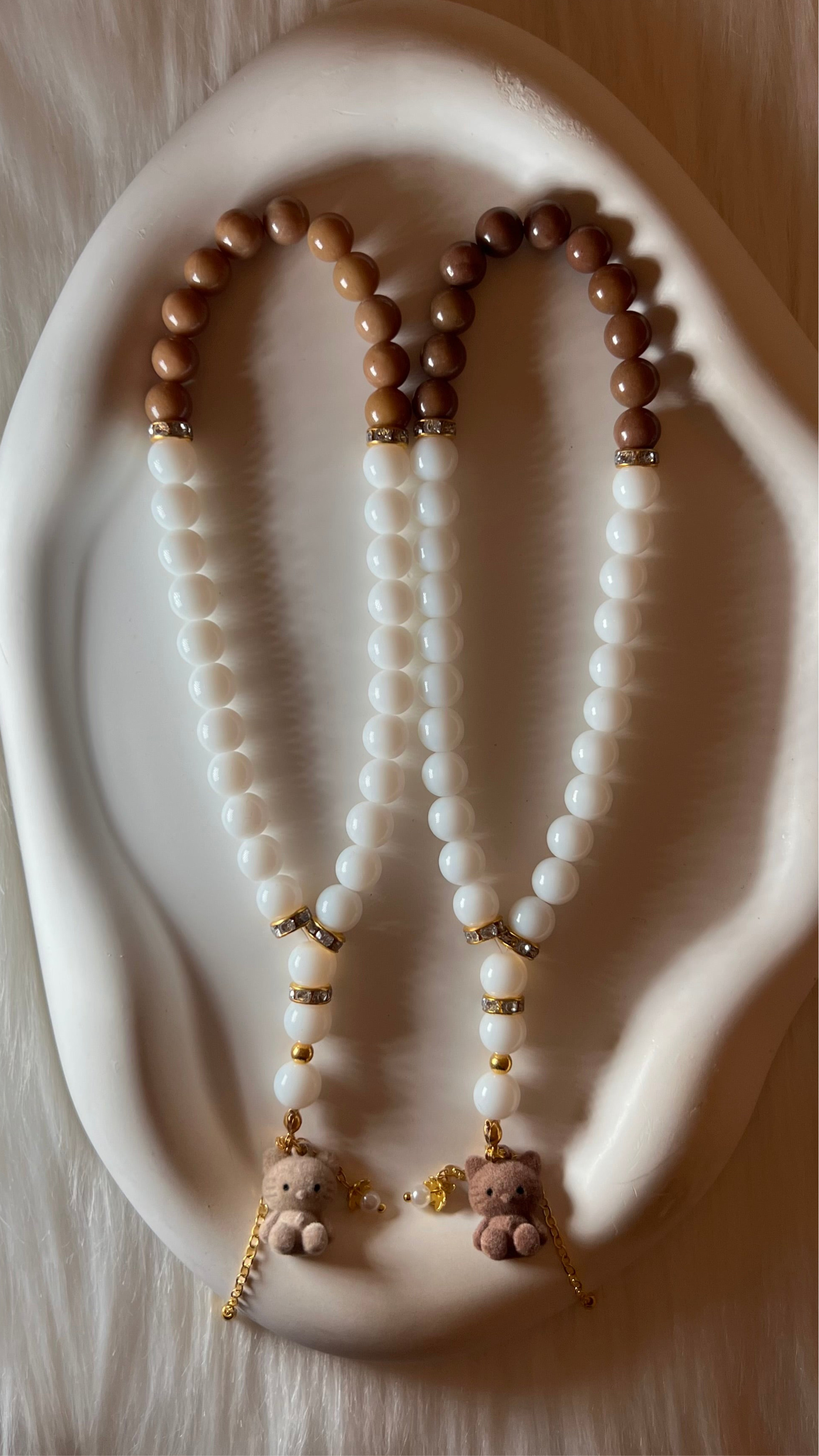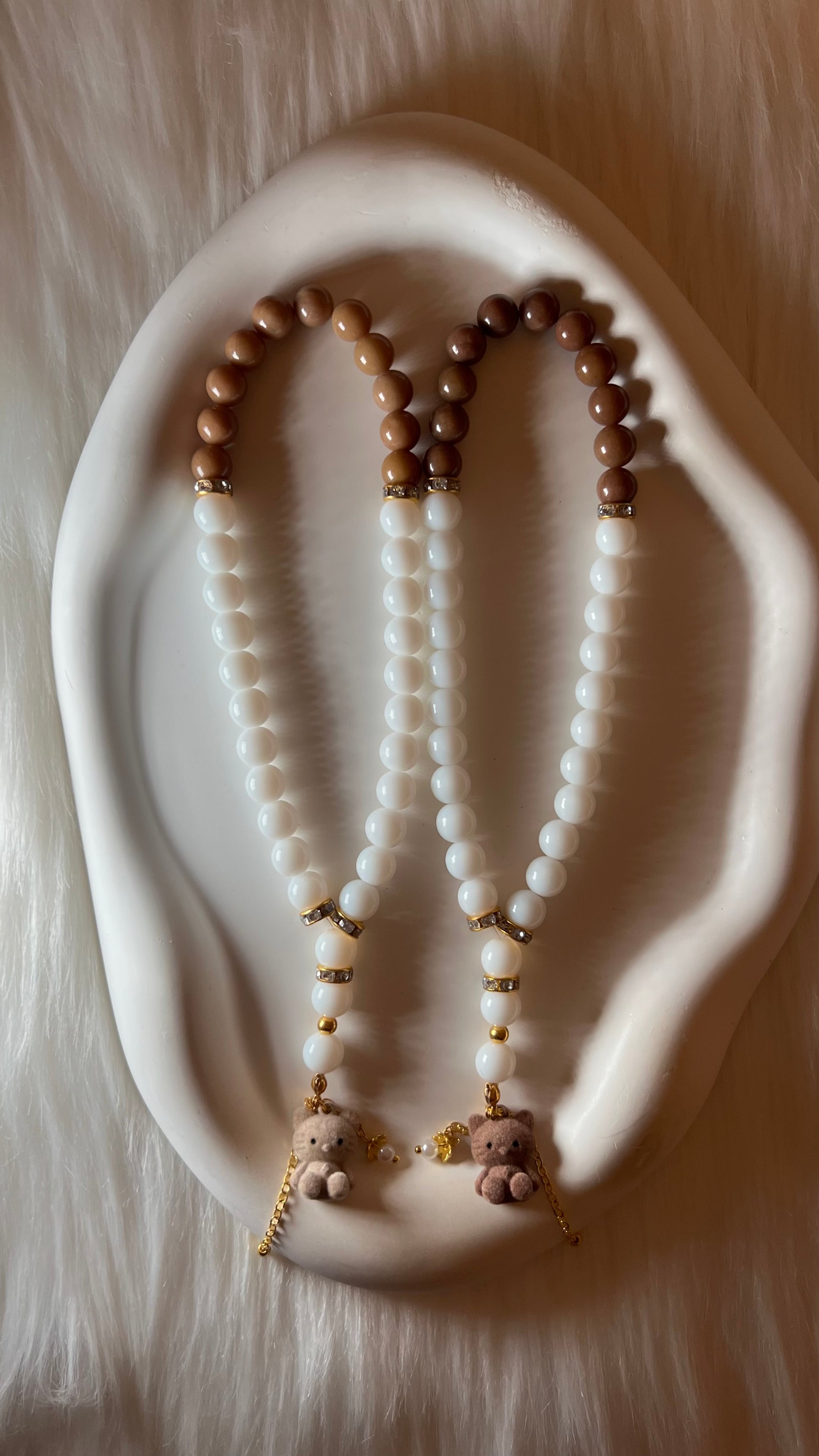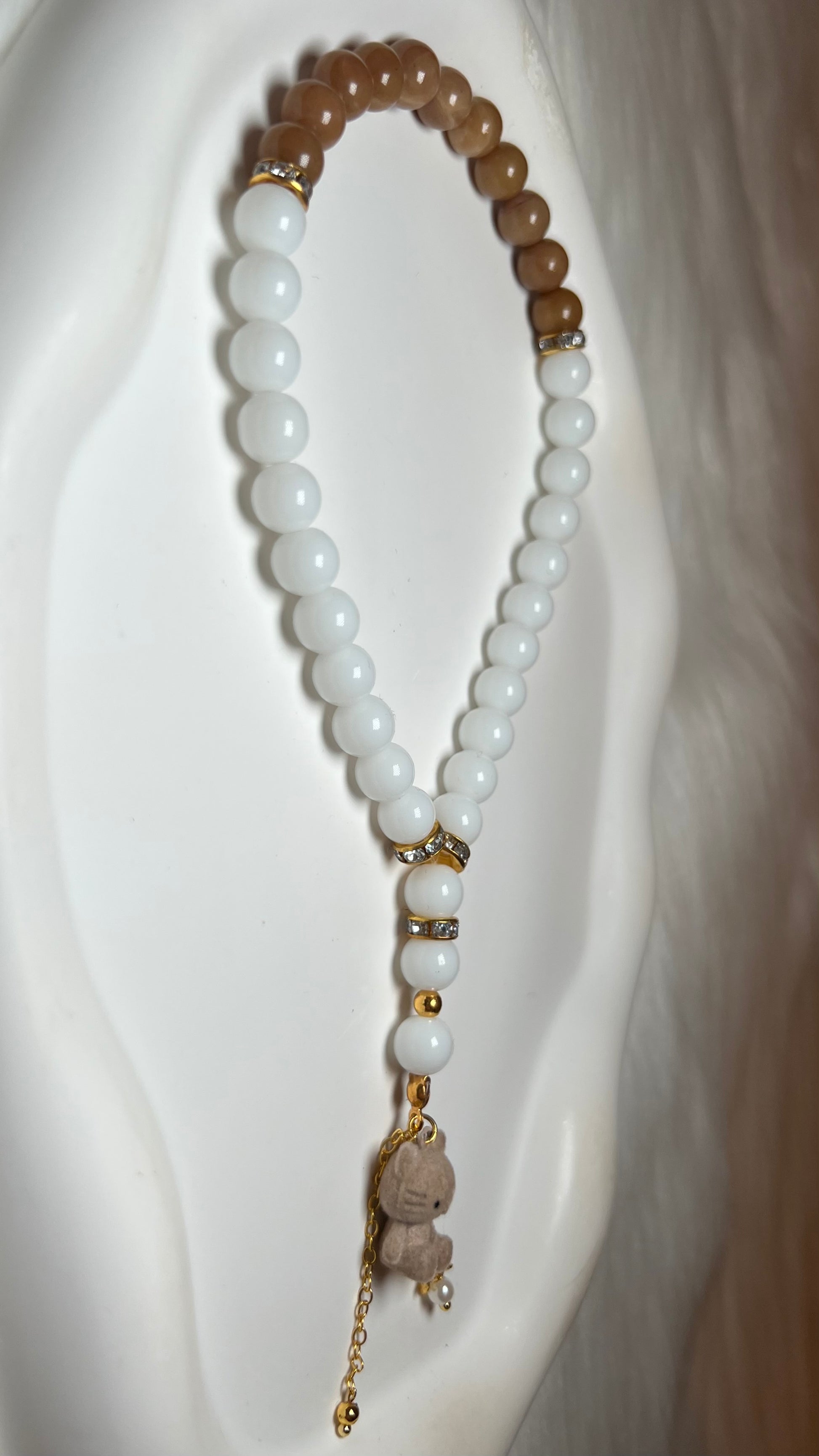 Eine niedliche Gebetskette mit braunem Hello Kitty Anhänger - Die Gebetsperlen liegen angenehm in der Hand und ermöglichen ein fließendes, konzentriertes Zählen.