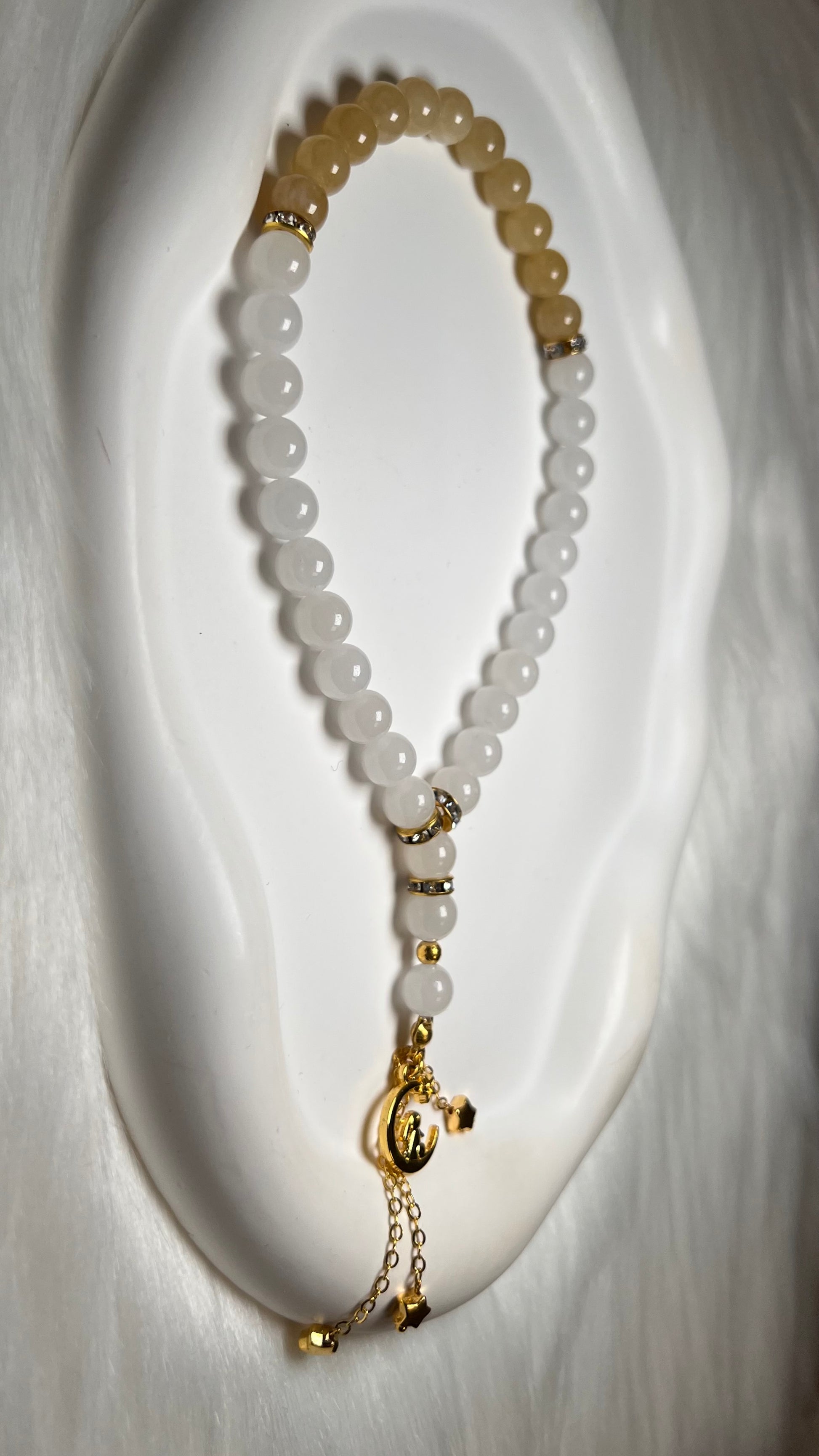 Unsere zauberhafte Häßchentasbih- Die Gebetsperlen im sanften Gelbton liegen angenehm in der Hand und ermöglichen ein fließendes, konzentriertes Zählen.