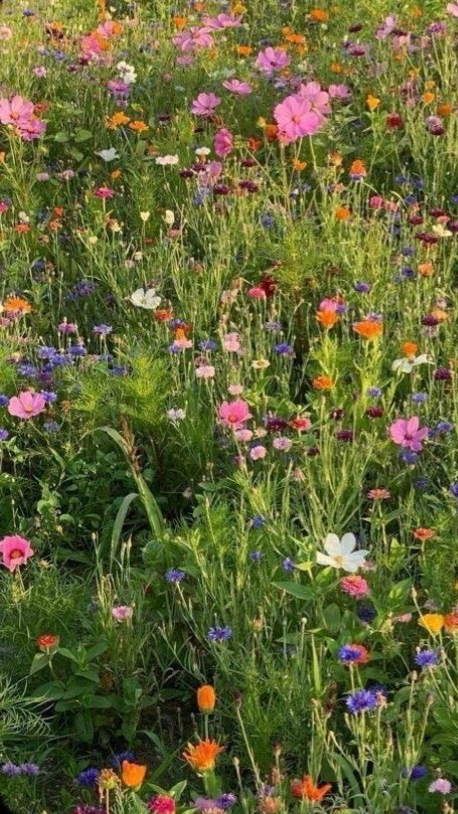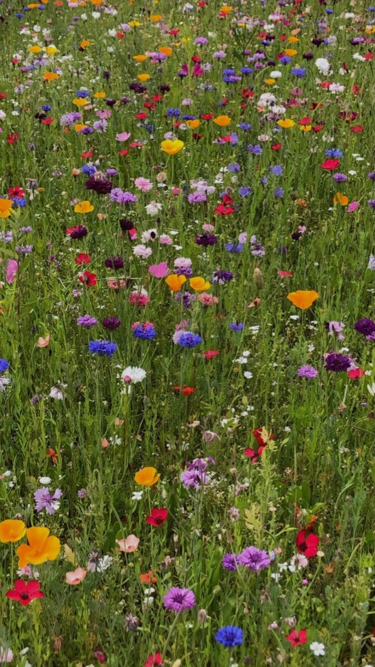 Zwischen den warmen Grastönen finden sich kleine, blumige Akzente in sanften Gelb- und Rosatönen.