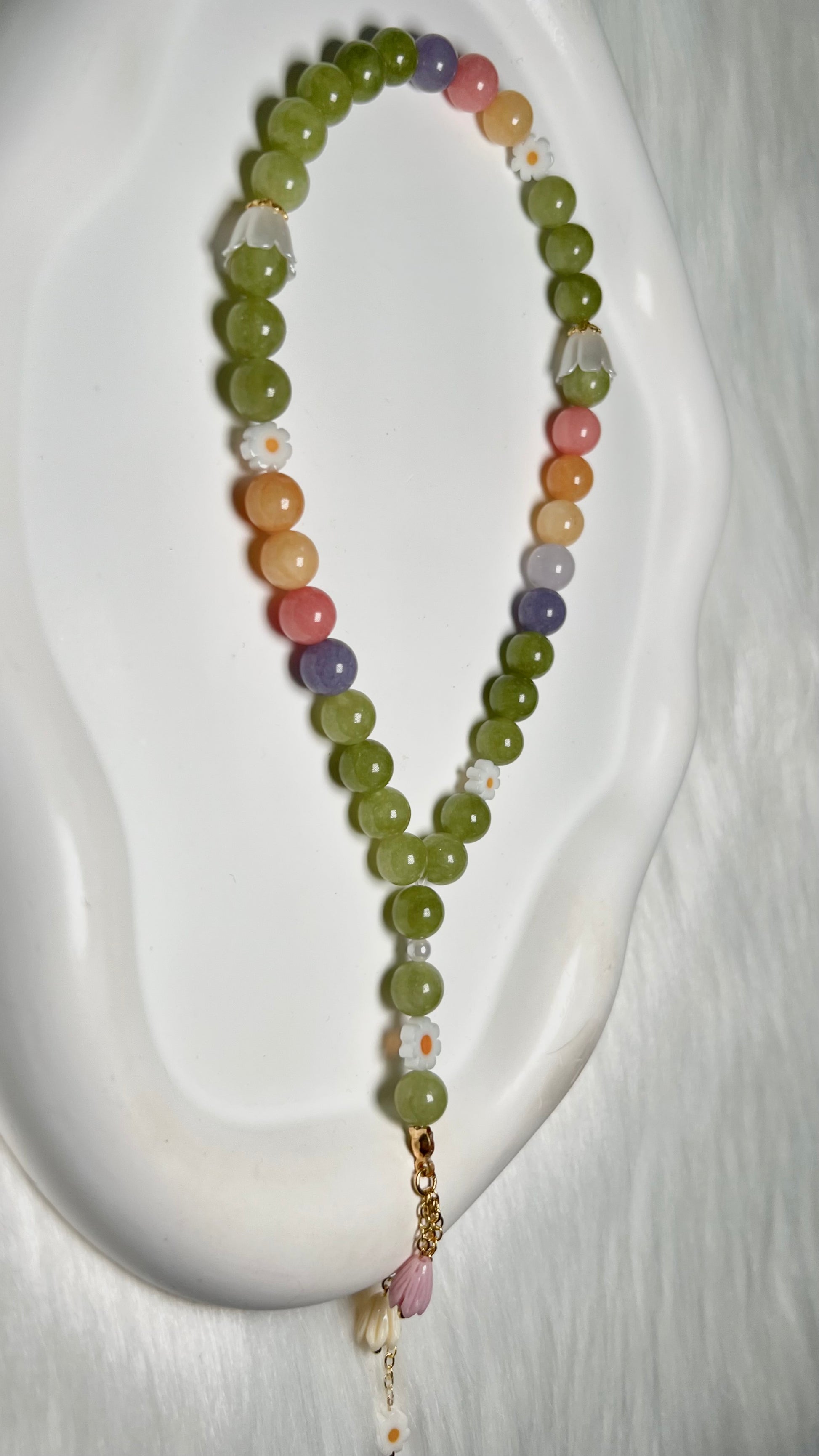 Die Gestaltung dieser Gebetskette ist inspiriert von den Farben einer blühenden Frühlingswiese.