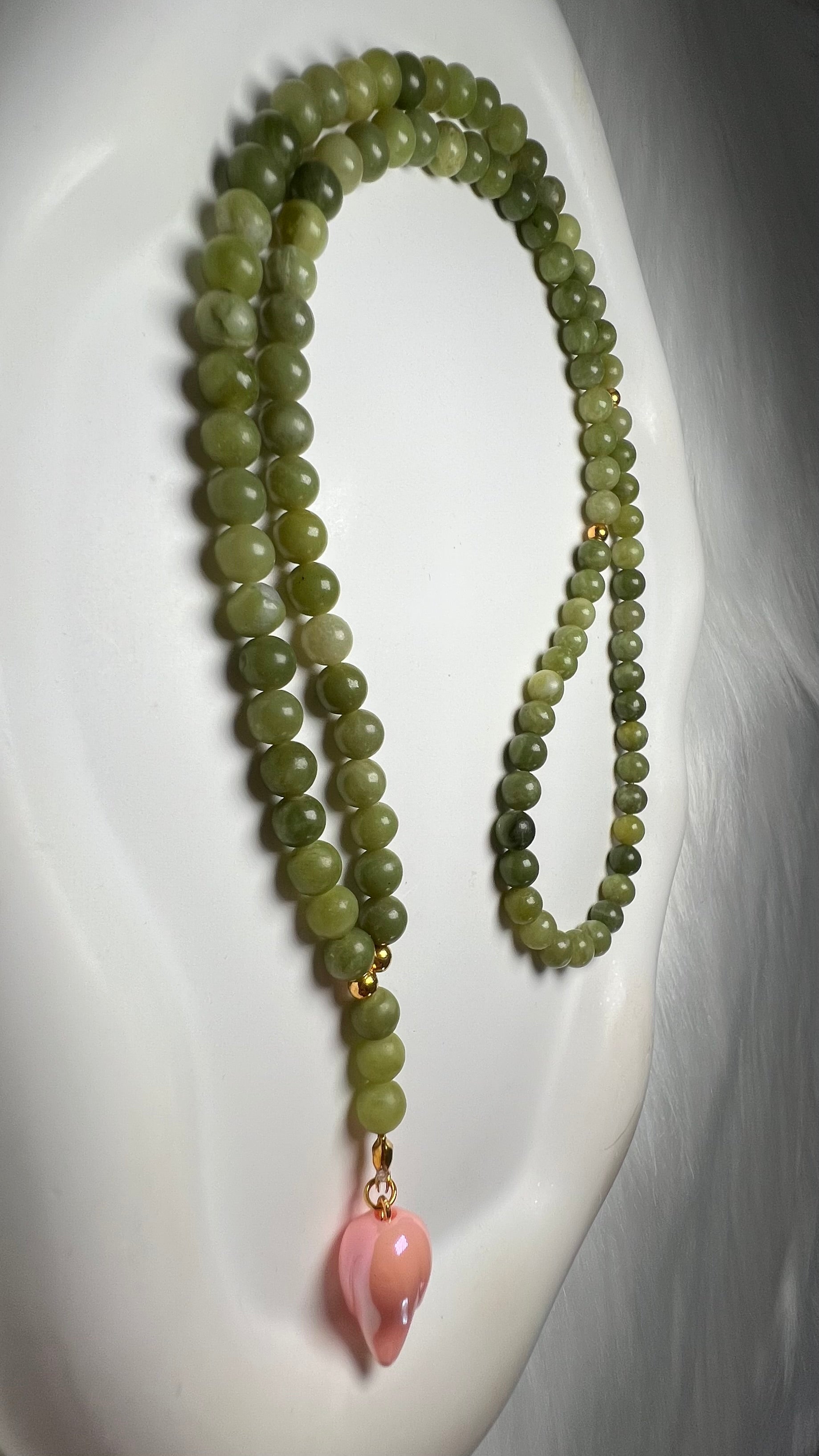 Eine Gebetskette gestaltet im Tulpenstil - Die Gebetsperlen in sanften Grüntönen liegen angenehm in der Hand und ermöglichen ein fließendes, konzentriertes Zählen.